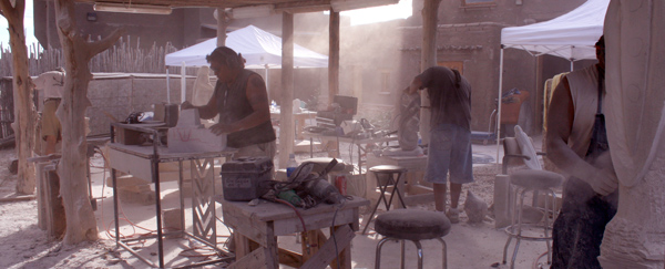 ISS at work at the 2007 Indigenous Sculptors Symposium at the Poeh Center, Pojoaque Pueblo, New Mexico.