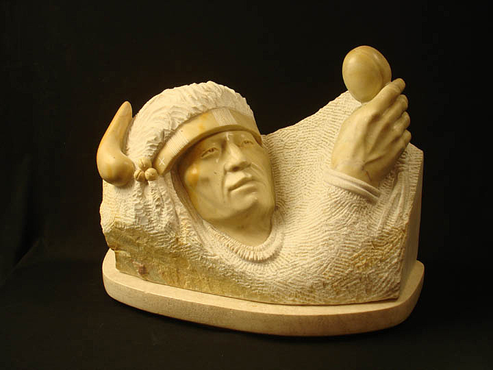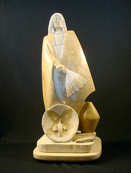 Oreland's work in bronze is more recent but has proven to be just as popular as his works in stone. His works in stone are primarily in marble, alabaster, and limestone. In his travels to France and Italy in 1978 and 1984, respectively, turned out to be additional life changing experiences. While there, Oreland was able to capture, in heart and mind, European art and culture. Seeing and feeling the impressive artistic works of the Greek, Roman, Renaissance and Baroque periods provoked another dimension in Oreland's artistic life. In 1986, a trip to Japan, introduced a new concept as well as a wider perception/perspective of art in other cultures. The time he spends in studying the arts and art history in regards to the European masters (Bernini, Canova, and Michelangelo) are actually his "periods of inspiration". Transcending into a period with the Masters ultimately provides motivation and inspiration. A constant study of sculptures in Italy, France, Japan, England, and Egypt continues to enhance Oreland's work. Researching and working with ideas and depictions of Native American lifestyles, songs, and dances of the 1800-1920s has always been a favorite as well. Images from this time span continues to give Oreland a sense of home and the finality of his pieces reveal it.