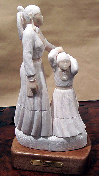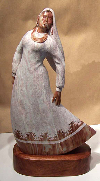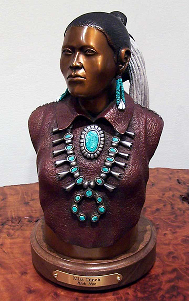 Rick Nez, a member of the Indigenous Sculptors Society, has an artistic future which looms large and bright. Nez attributes much of his success to the support of his beloved wife Audrey and four children, and points to their shared journey through life as a major inspiration to his work. One can hardly help approaching the work of Rick Nez without some reflection of the reverent spirit he transfers to each of his works. (from http://www.kivaindianart.com/artistInfo.asp?ID=162)